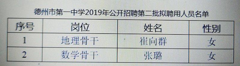 德州市第一中学2019年公开招聘第二批拟聘用人员名单