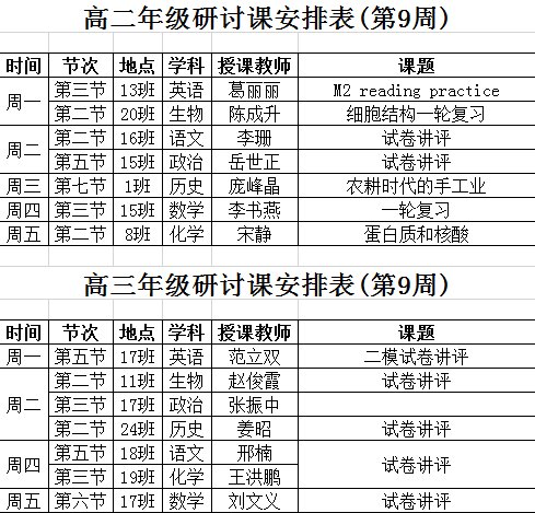 老校区第9周研讨课安排表